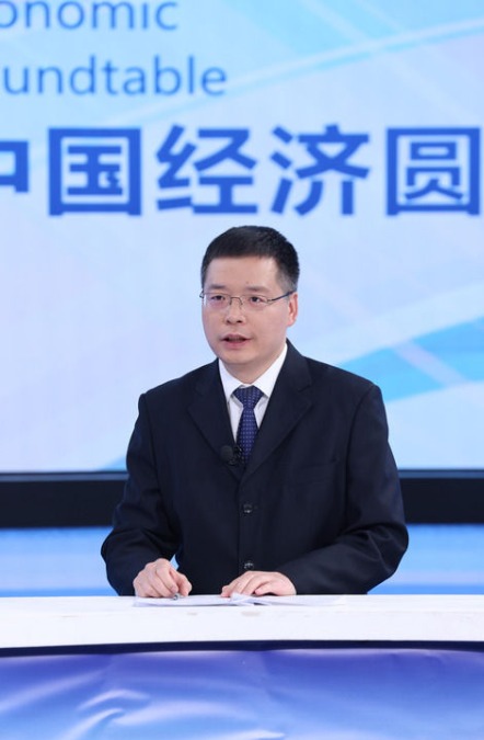 京东消费与产业发展研究院院长刘晖在第二十九期“中国经济圆桌会”大型全媒体访谈节目录制现场发言。新华社记者 殷刚 摄